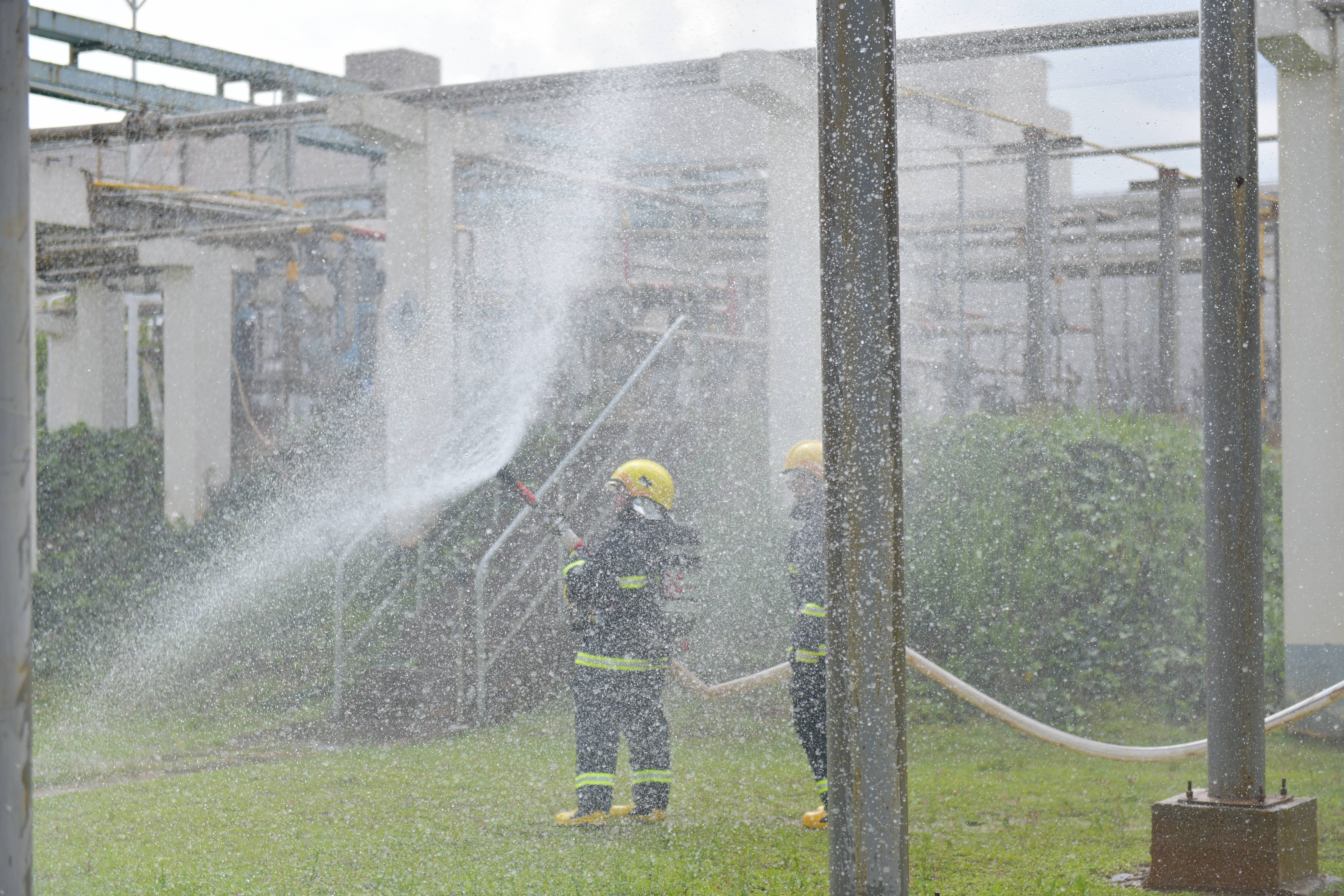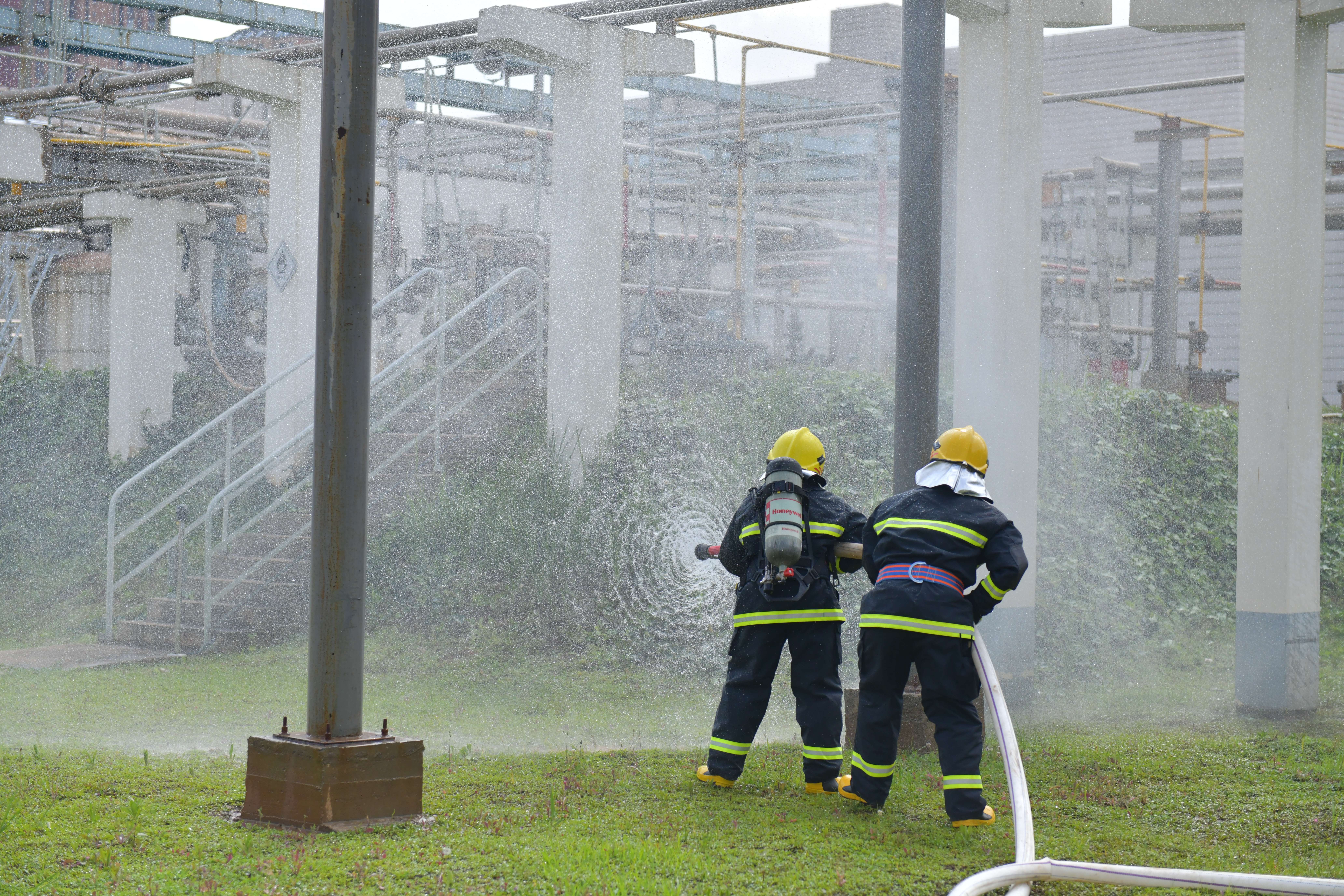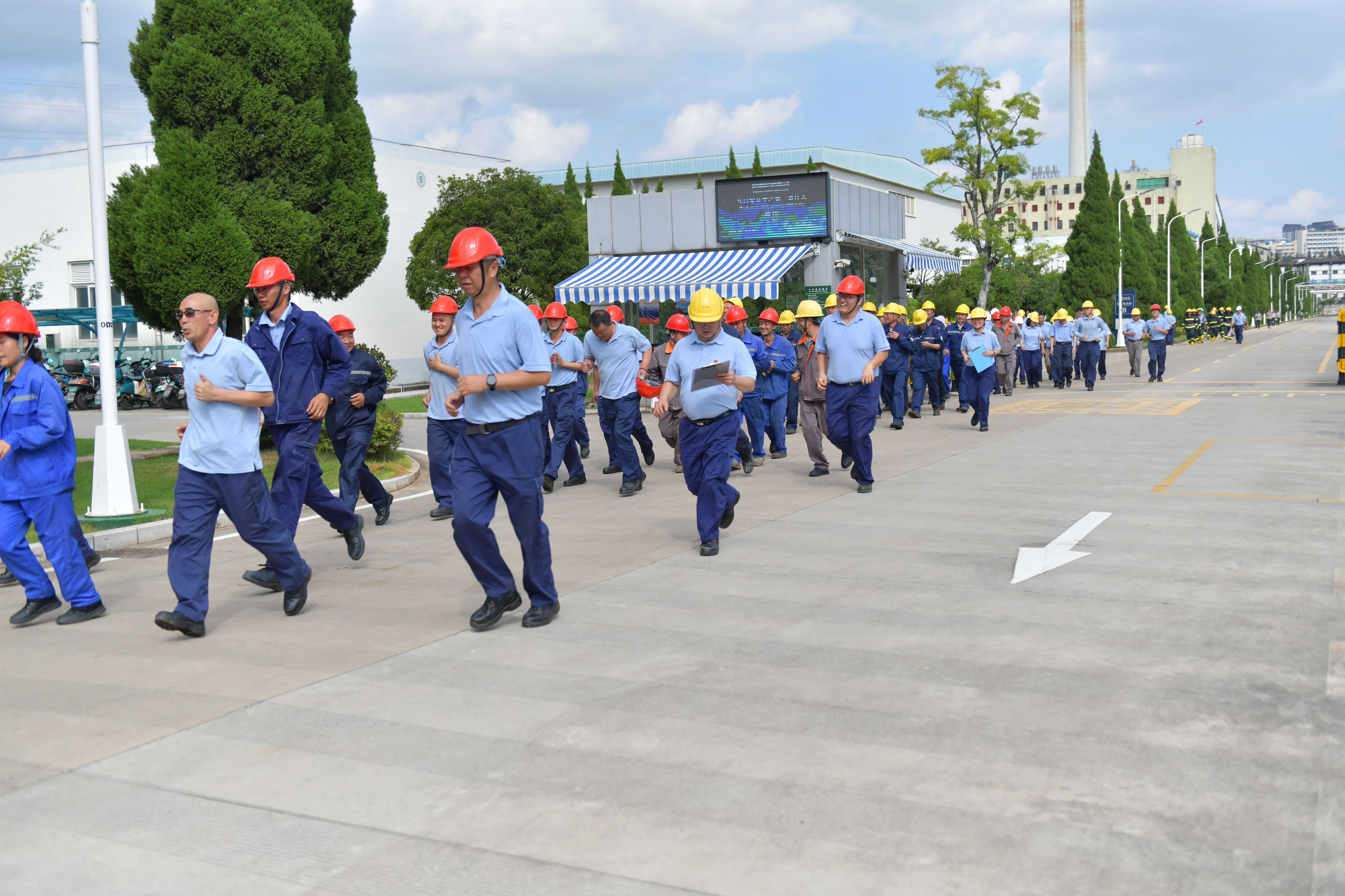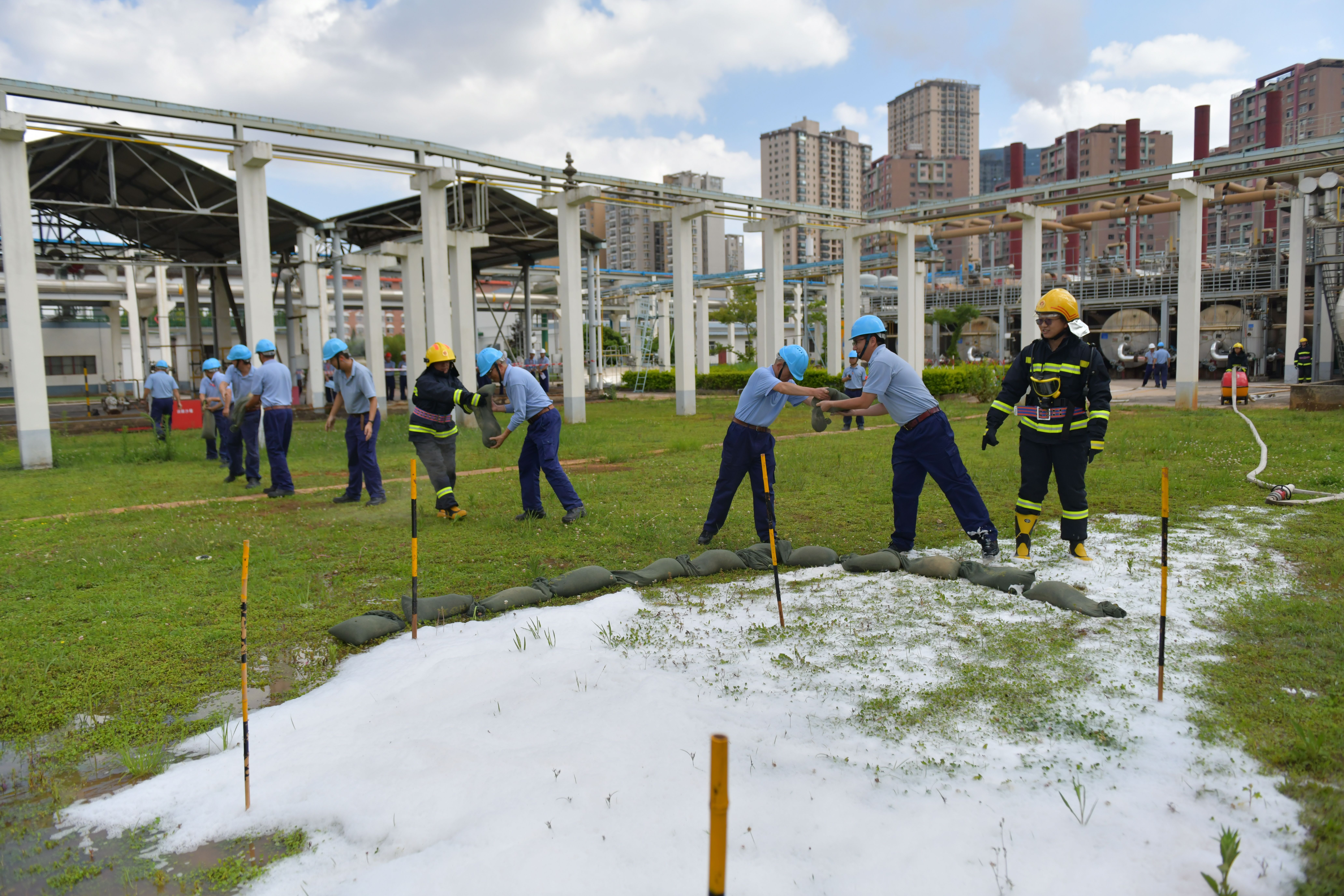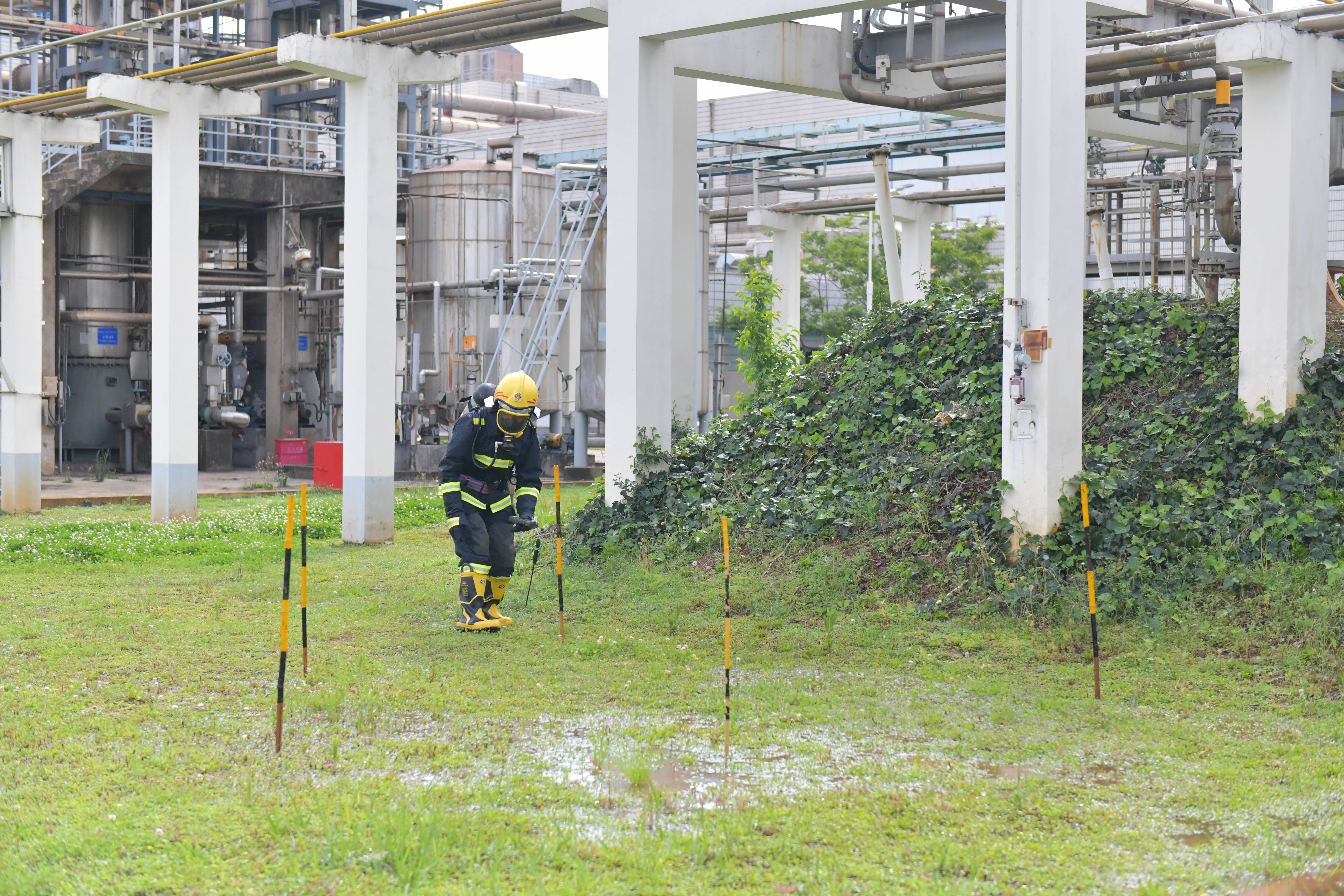 本次演練分為兩個(gè)內(nèi)容,一是丙酮儲(chǔ)罐區(qū)發(fā)生丙酮泄漏后的應(yīng)急處置,二是全廠緊急撤離。下午4點(diǎn),演練正式開始,模擬丙酮儲(chǔ)槽區(qū)4#丙酮儲(chǔ)罐1#泵出口管道法蘭發(fā)生泄漏,可燃?xì)怏w探測(cè)系統(tǒng)發(fā)出丙酮濃度高報(bào)警,值班長立即通知消防中心拉響警報(bào),召集當(dāng)班應(yīng)急隊(duì)員集合。應(yīng)急隊(duì)員到達(dá)現(xiàn)場后關(guān)閉液下泵出口閥,用開花水槍噴淋加濕泄漏點(diǎn)周邊區(qū)域,標(biāo)記出丙酮污染的區(qū)域,噴灑泡沫覆蓋泄漏的丙酮。期間模擬應(yīng)急隊(duì)員暈倒,救護(hù)組立即進(jìn)入現(xiàn)場救治,最后全體應(yīng)急隊(duì)員和當(dāng)班員工用沙袋搭建圍堰防止混合液體擴(kuò)散。隨后應(yīng)急廣播發(fā)出全廠緊急撤離警報(bào),全體參演員工快速有序地向第一集合點(diǎn)集合,最終全體安全撤離到第二集合點(diǎn),演練圓滿結(jié)束。此次演練檢驗(yàn)了在后援力量未到達(dá)公司時(shí),值班長的應(yīng)急調(diào)度能力和指揮能力,同時(shí)也檢驗(yàn)了員工的應(yīng)急處置技能。