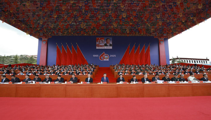 8月21日上午,西藏各族各界干部群眾約2萬人歡聚拉薩市布達(dá)拉宮廣場,熱烈慶祝西藏自治區(qū)成立60周年。中共中央總書記、國家主席、中央軍委主席習(xí)近平出席慶祝大會。王滬寧、蔡奇出席大會。新華社記者 殷博古 攝