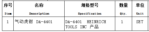 1.1采購項目名稱: 氣動虎鉗 DA-4401 1套